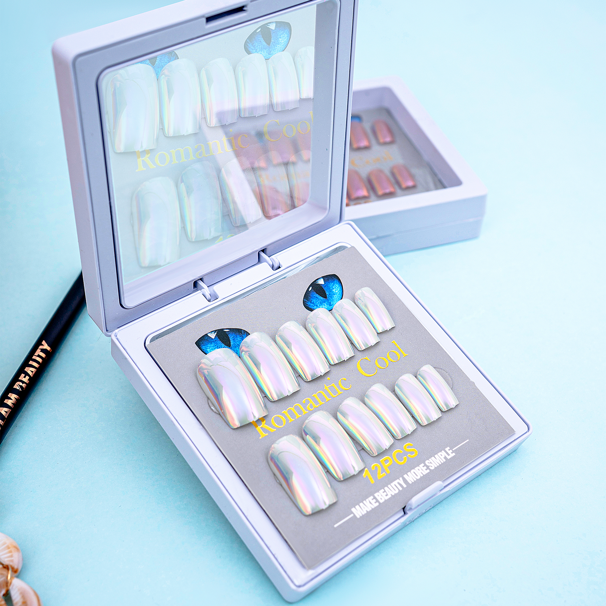 A soft pearly chrome set that glows with subtle rainbow reflections.Its clean, elegant shine gives your nails a dreamy, angelic look.Perfect for minimal yet magical styling.