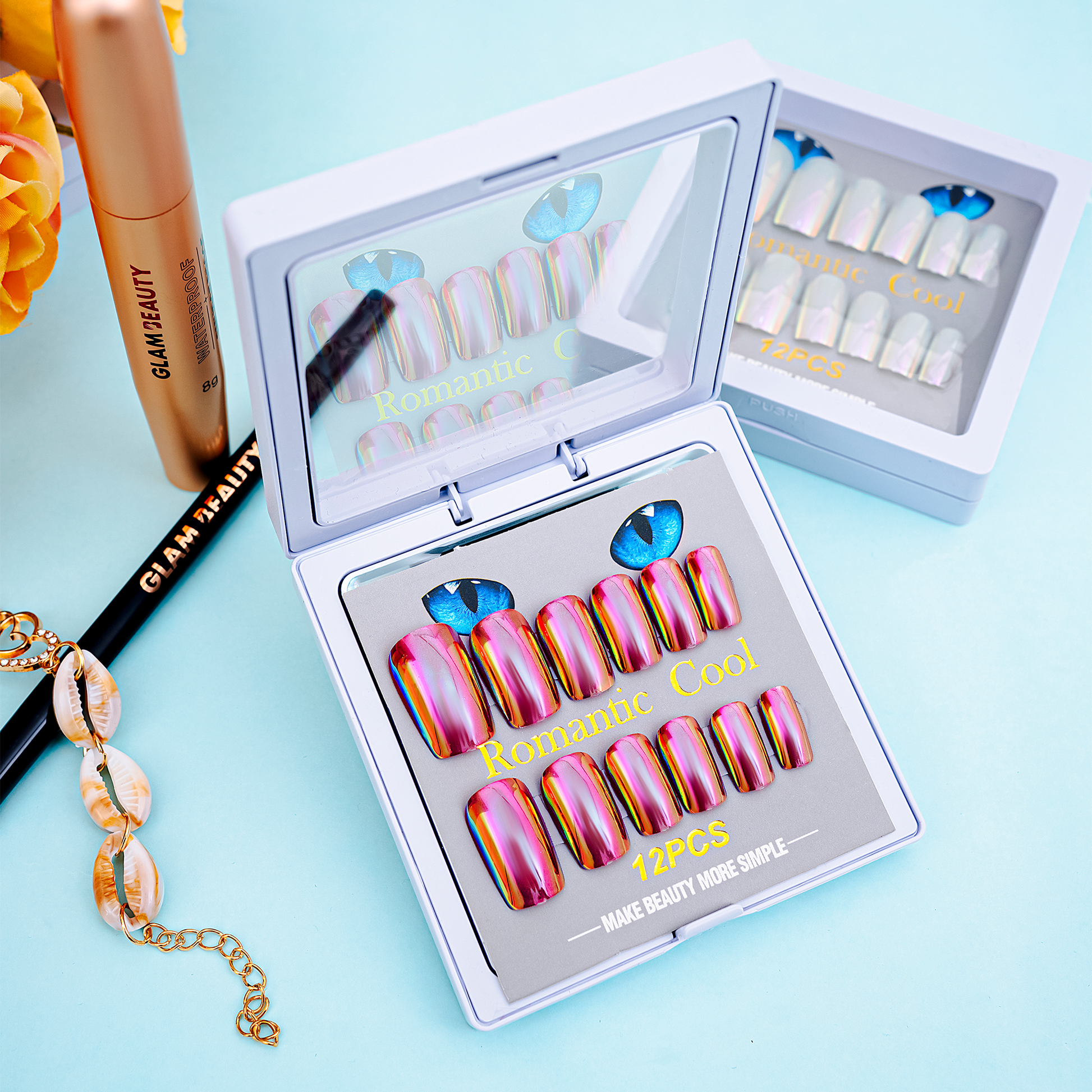 A rich orange-pink chrome set that shines like warm amber.Its glossy, reflective finish adds instant radiance to any look.Perfect for bold, glowing nails with a touch of elegance.