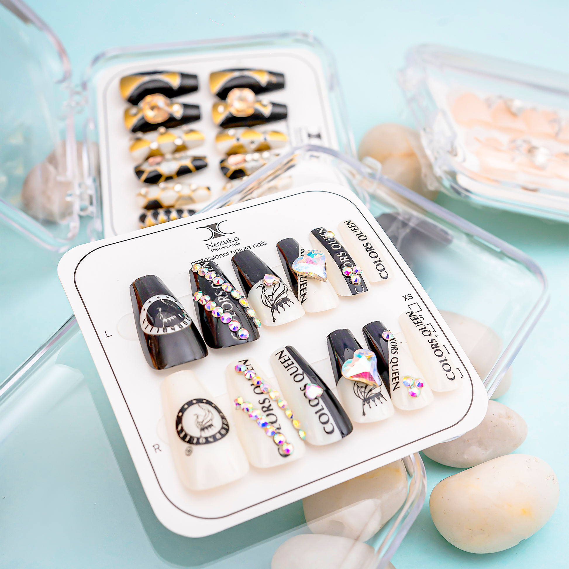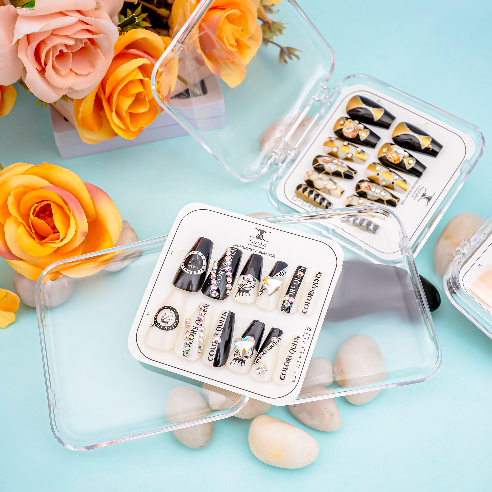 - Pick a press-on nail that fits your natural nail and apply it by pushing the base slightly under your cuticles, folding down and pressing on the nail for about 10-20 seconds.