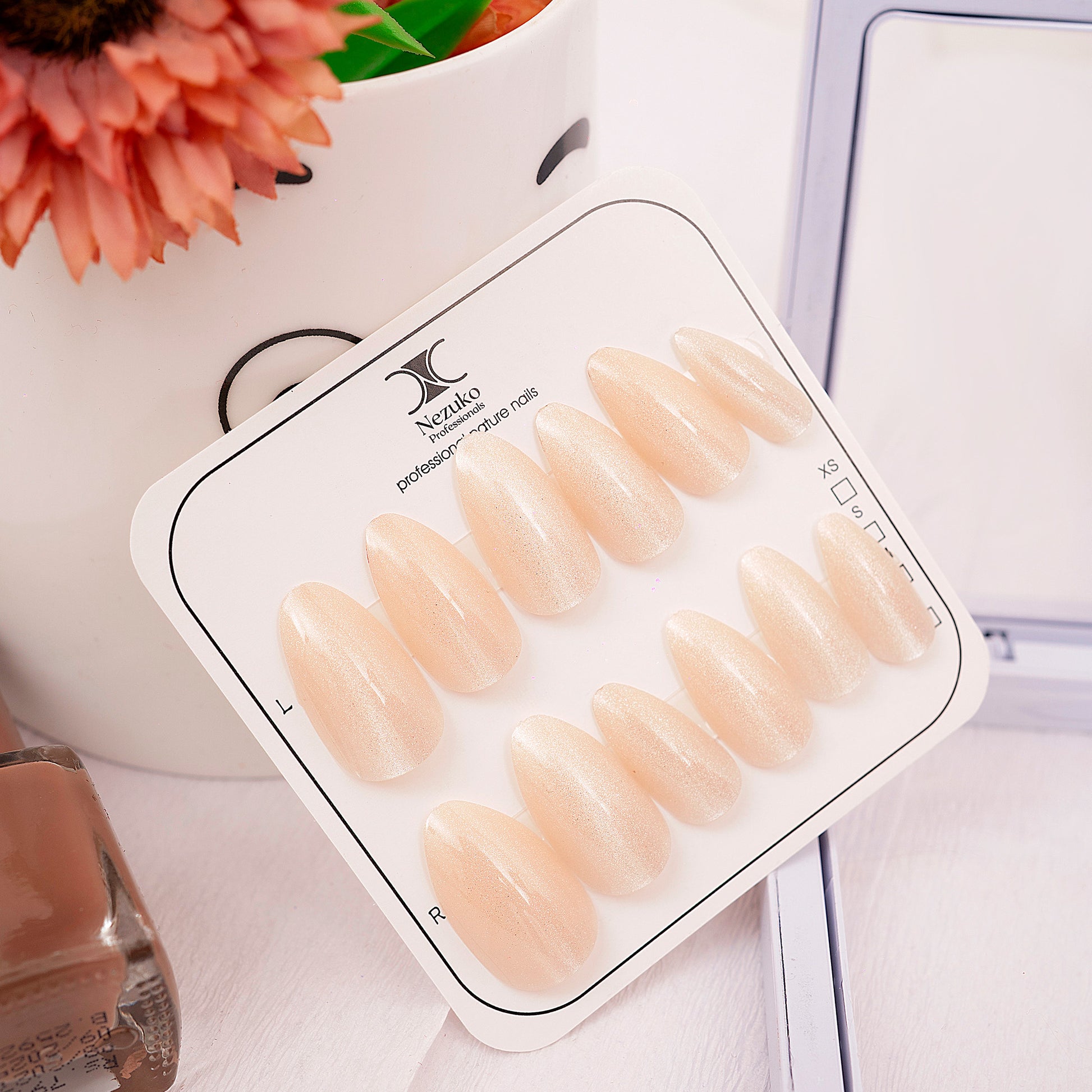 - Pick a press-on nail that fits your natural nail and apply it by pushing the base slightly under your cuticles, folding down and pressing on the nail for about 10-20 seconds.