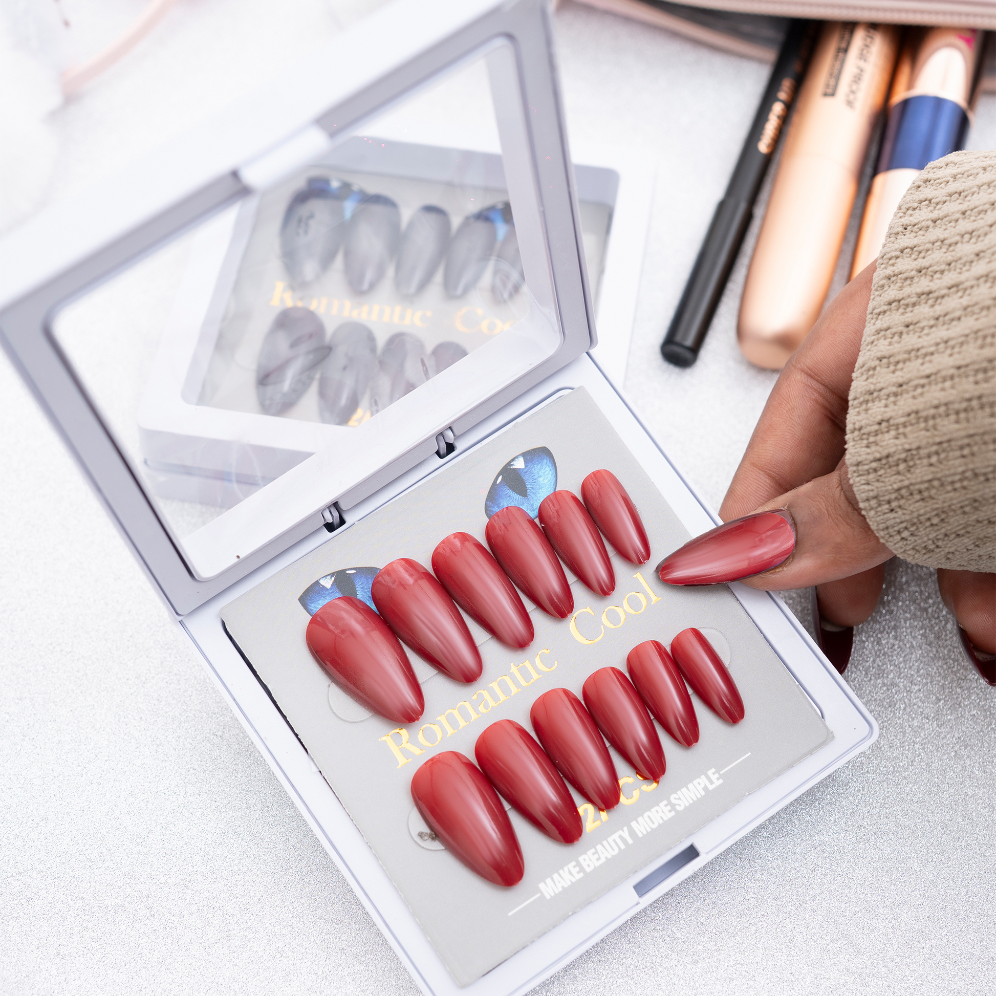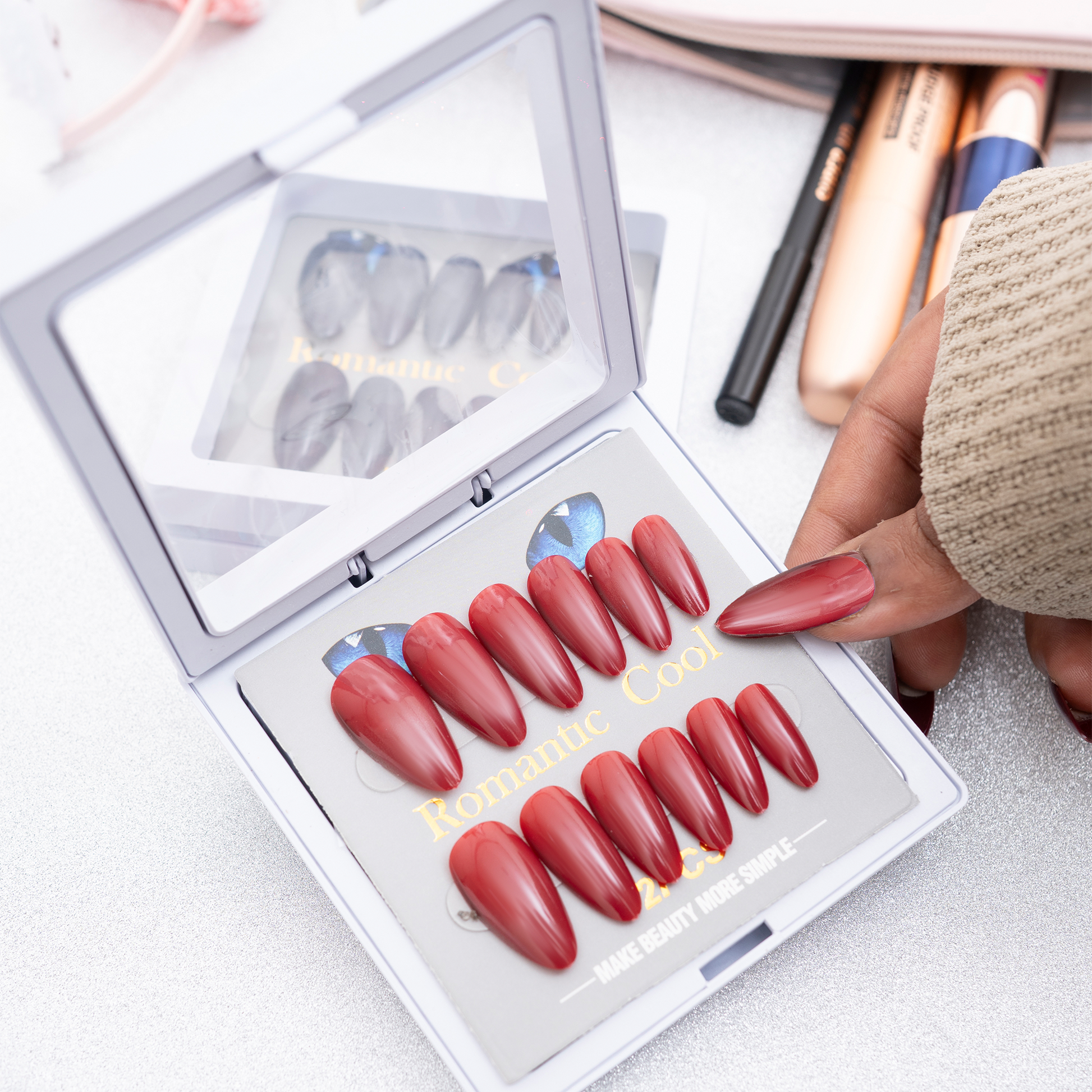 A glossy cherry-red that feels bright, bold, and timeless.Makes your hands stand out with a clean and classic finish.Great for both everyday glam and festive looks