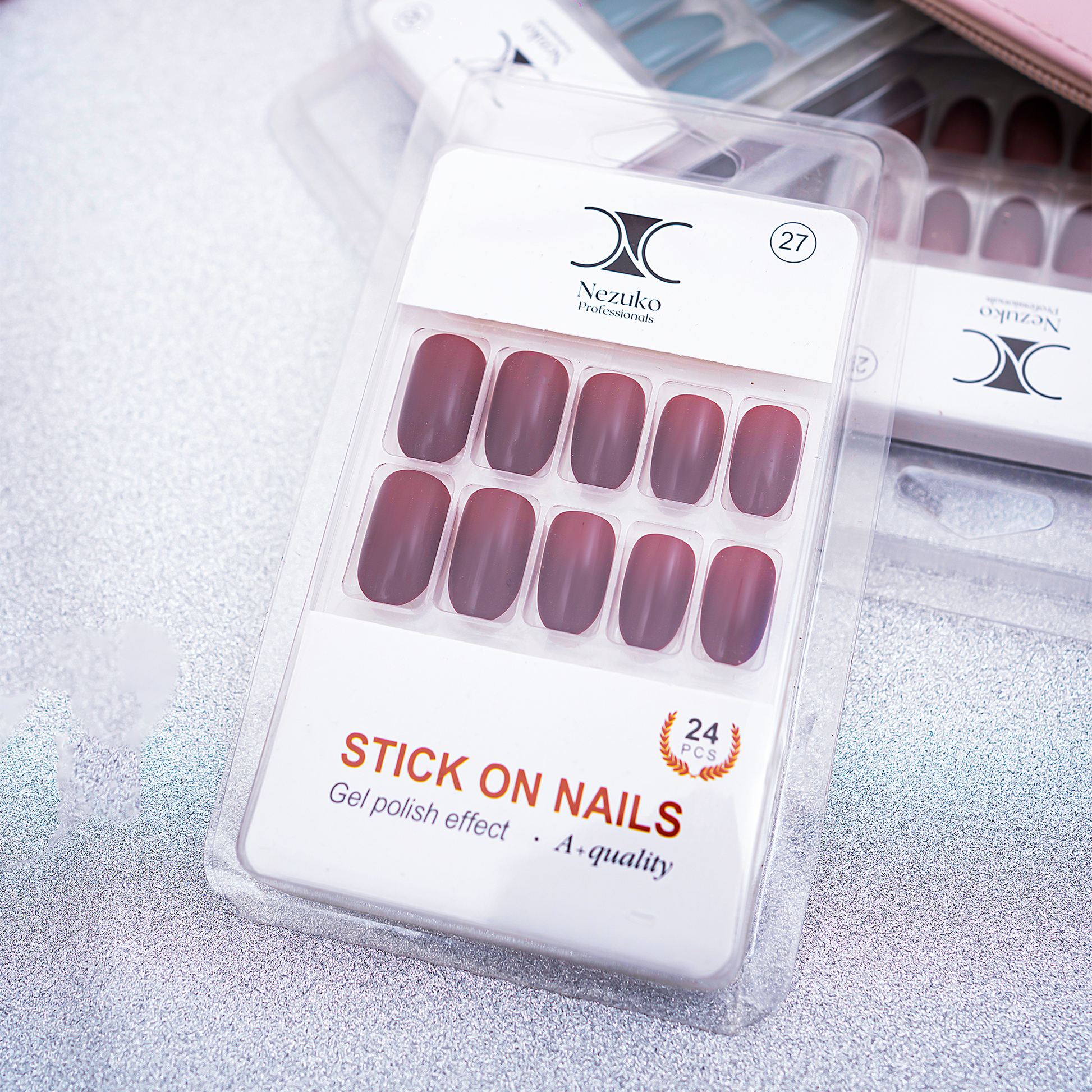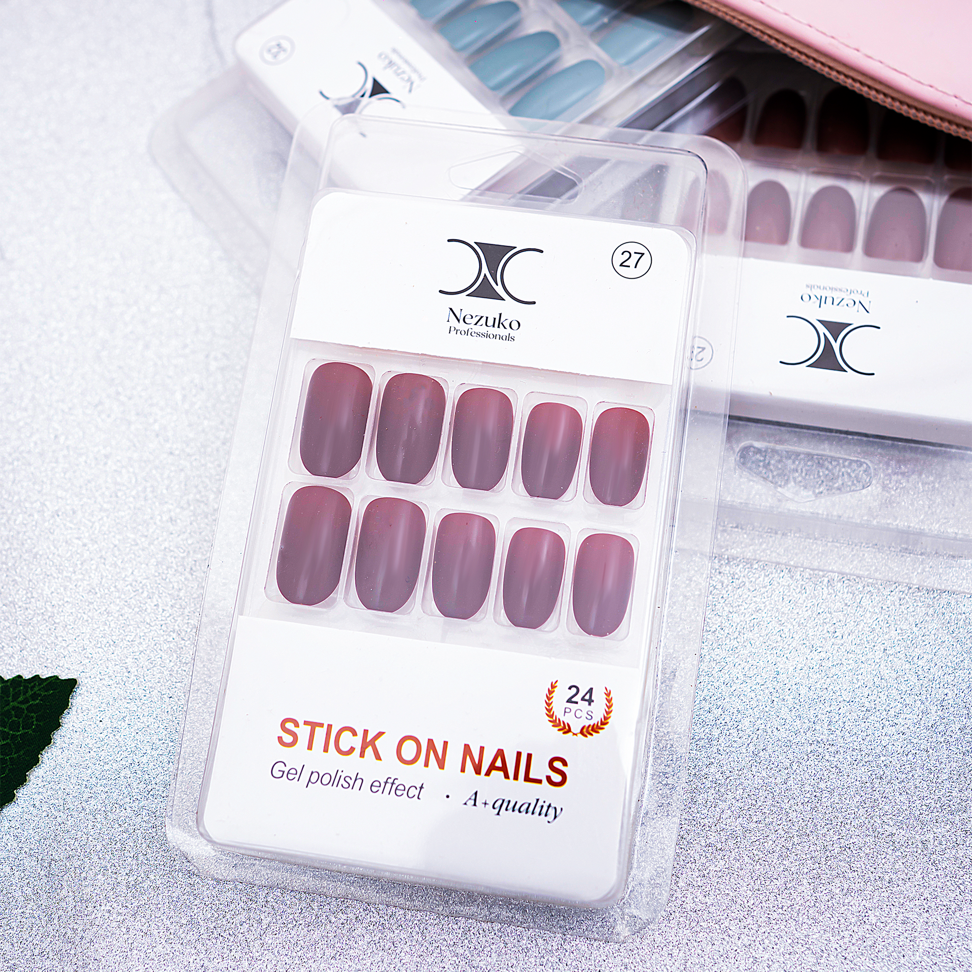 - Pick a press-on nail that fits your natural nail and apply it by pushing the base slightly under your cuticles, folding down and pressing on the nail for about 10-20 seconds.