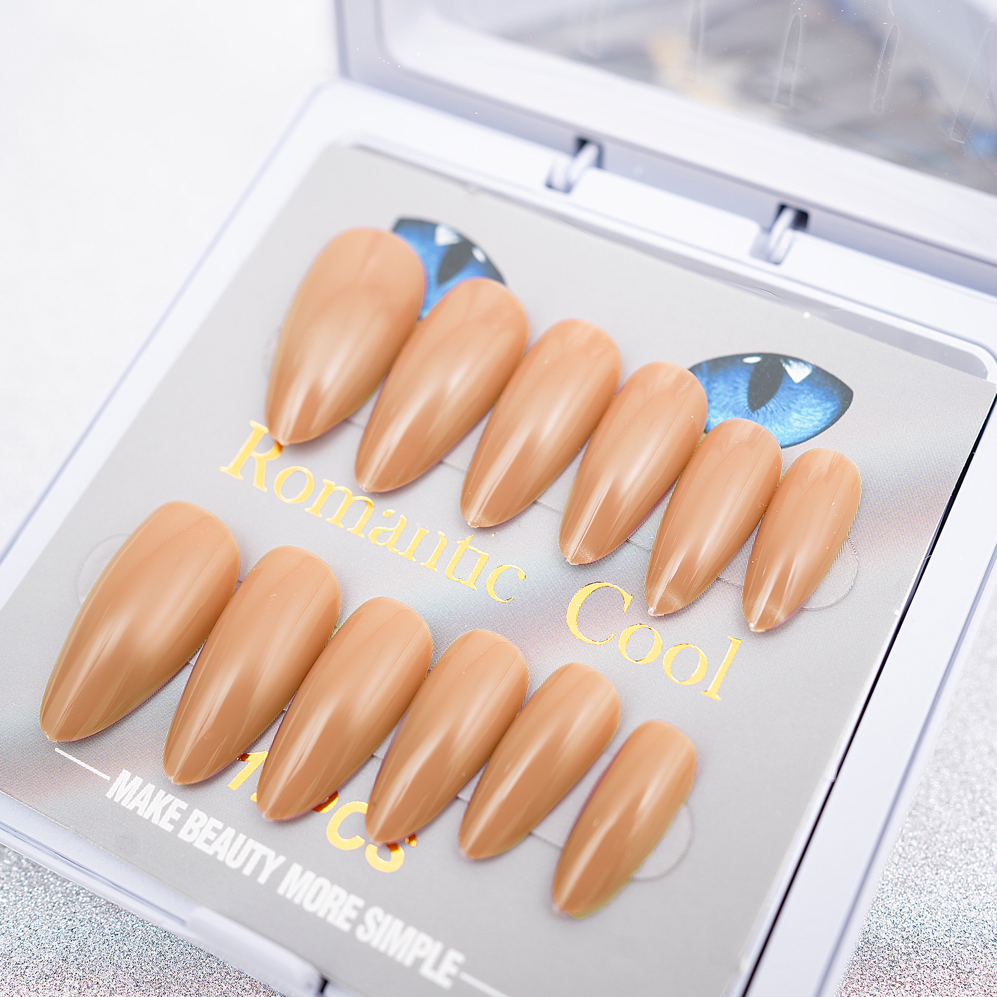 - Pick a press-on nail that fits your natural nail and apply it by pushing the base slightly under your cuticles, folding down and pressing on the nail for about 10-20 seconds.