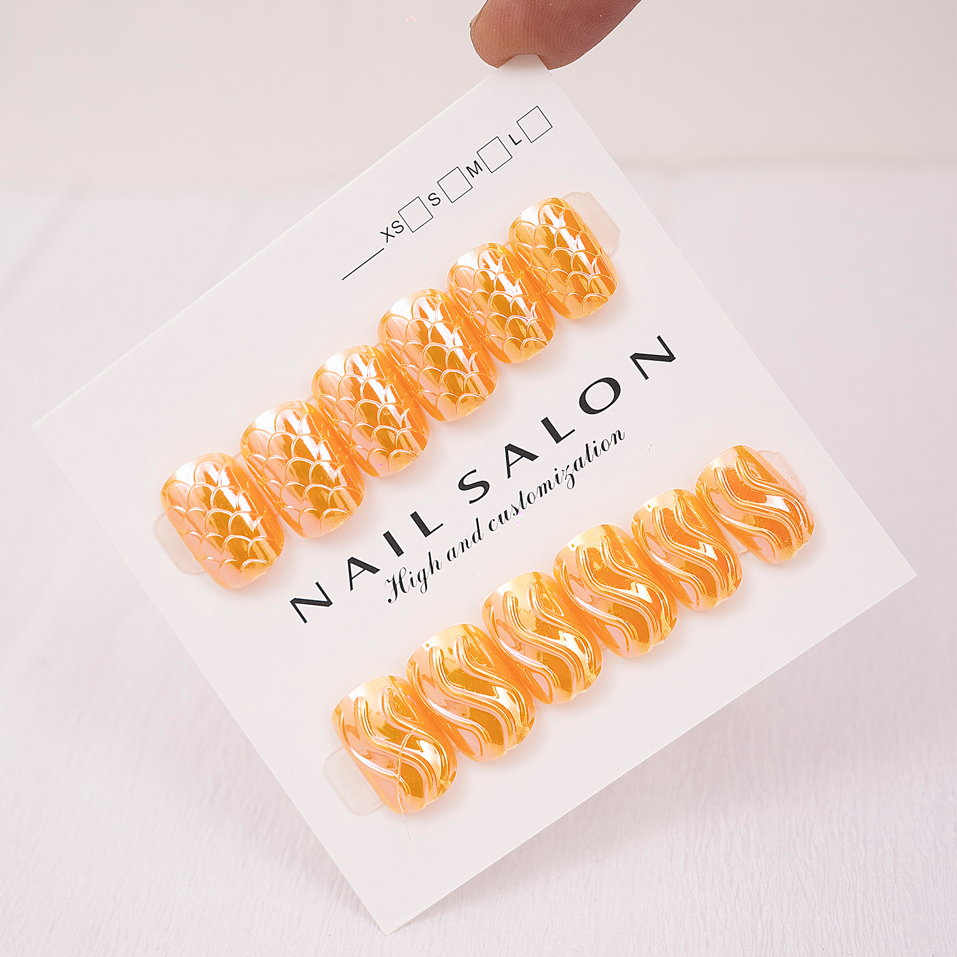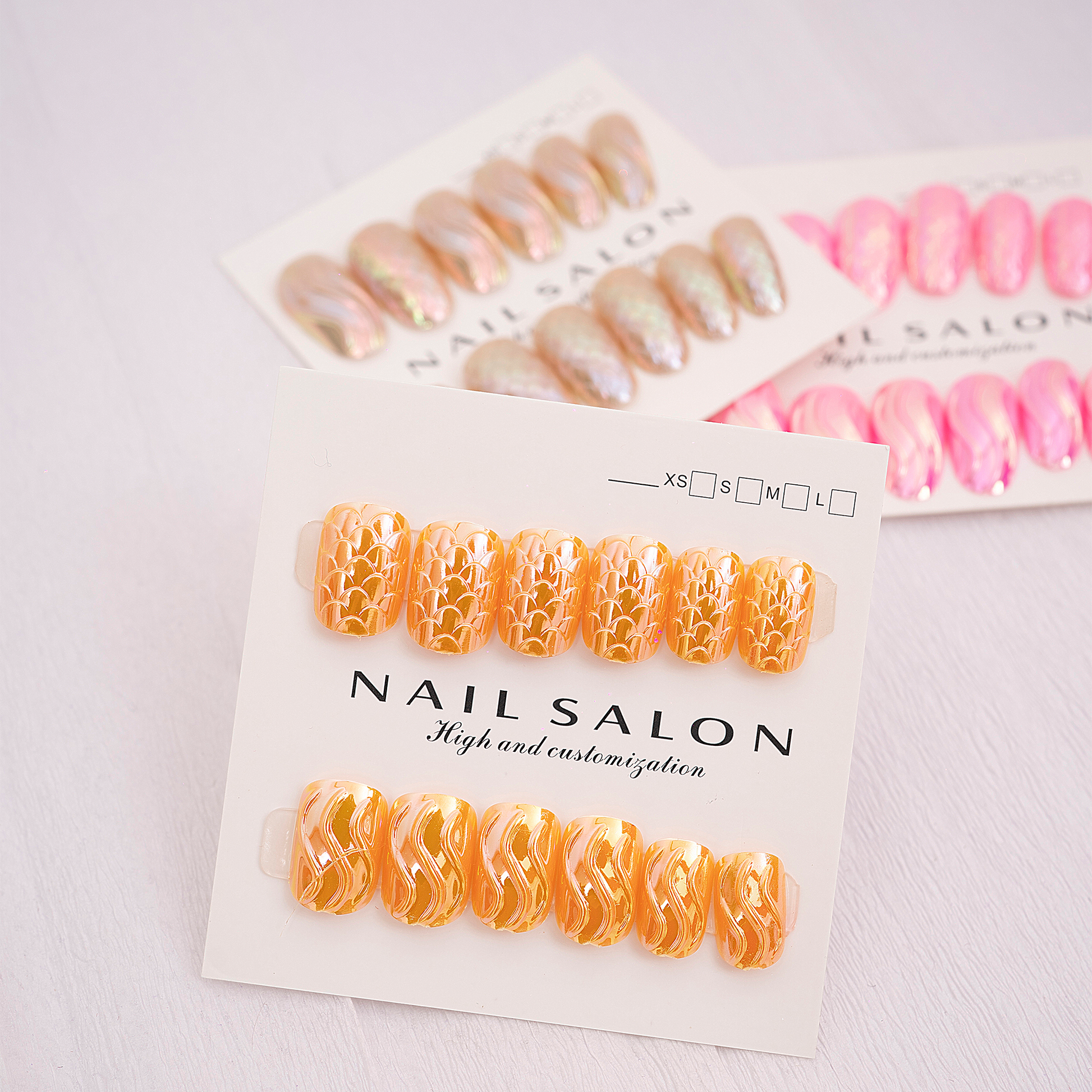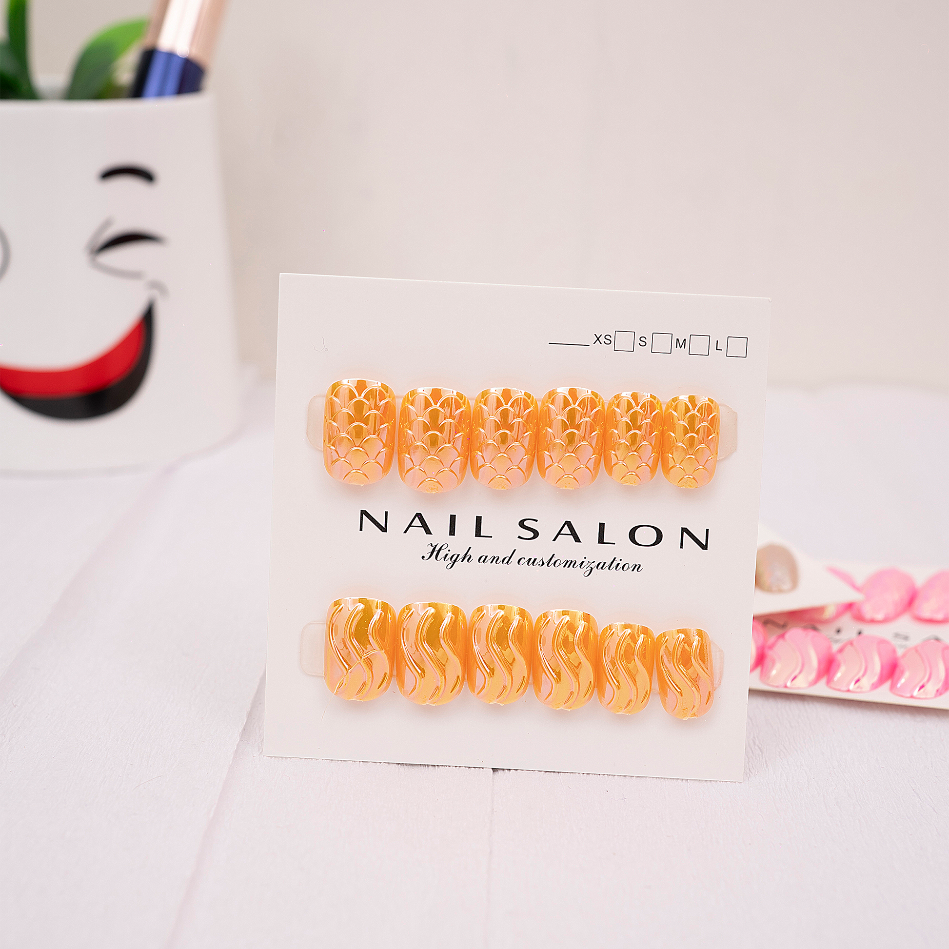 - Pick a press-on nail that fits your natural nail and apply it by pushing the base slightly under your cuticles, folding down and pressing on the nail for about 10-20 seconds.