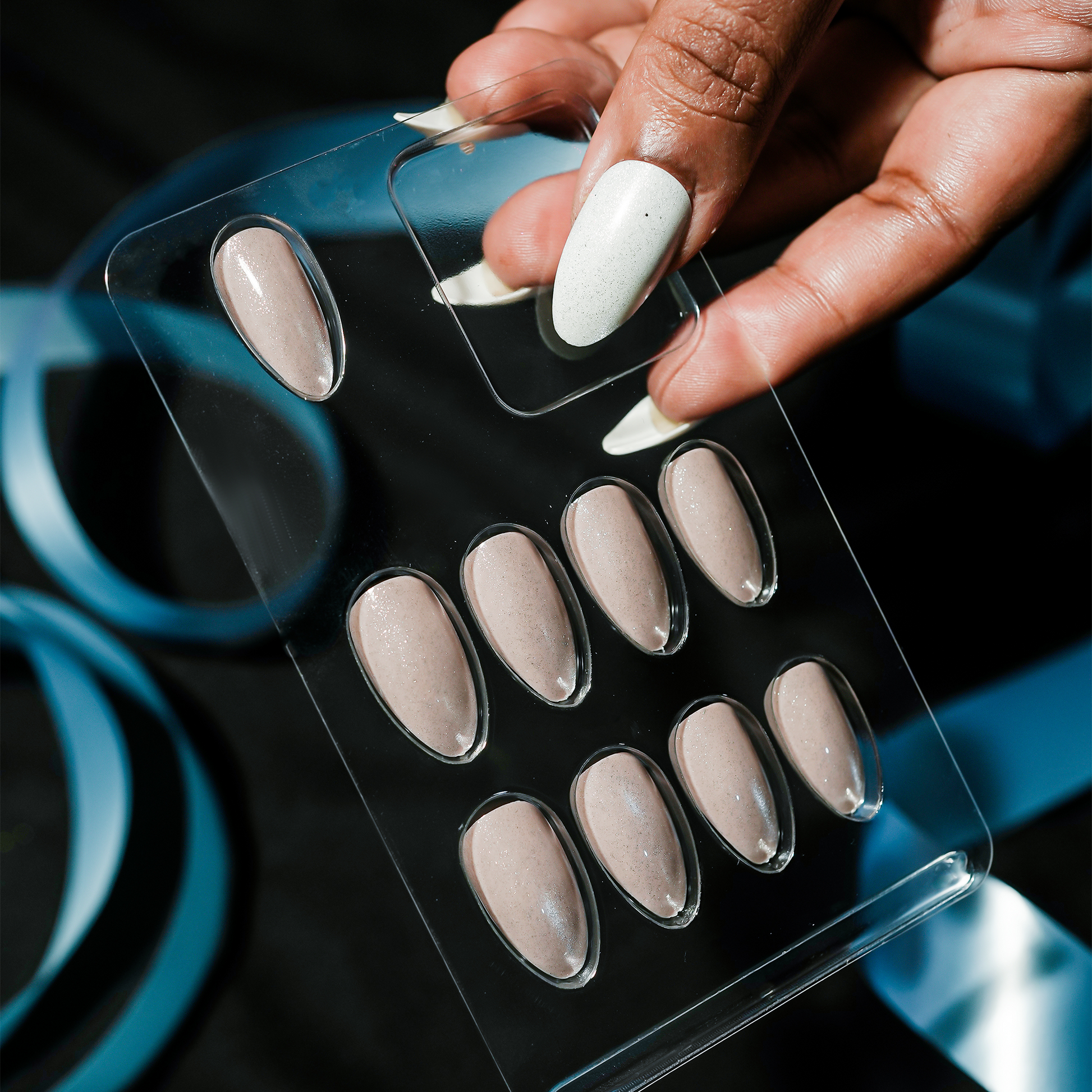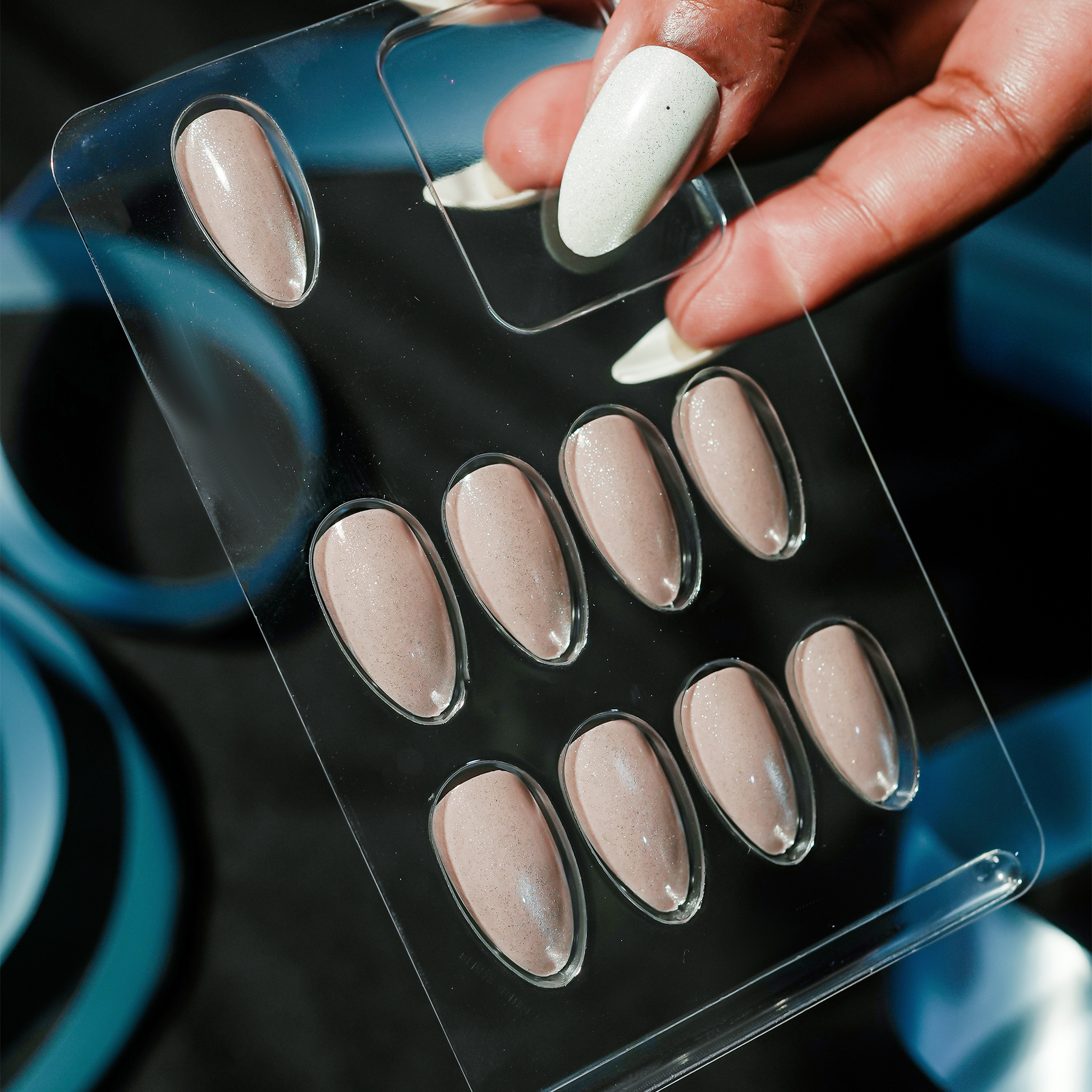 - Pick a press-on nail that fits your natural nail and apply it by pushing the base slightly under your cuticles, folding down and pressing on the nail for about 10-20 seconds.