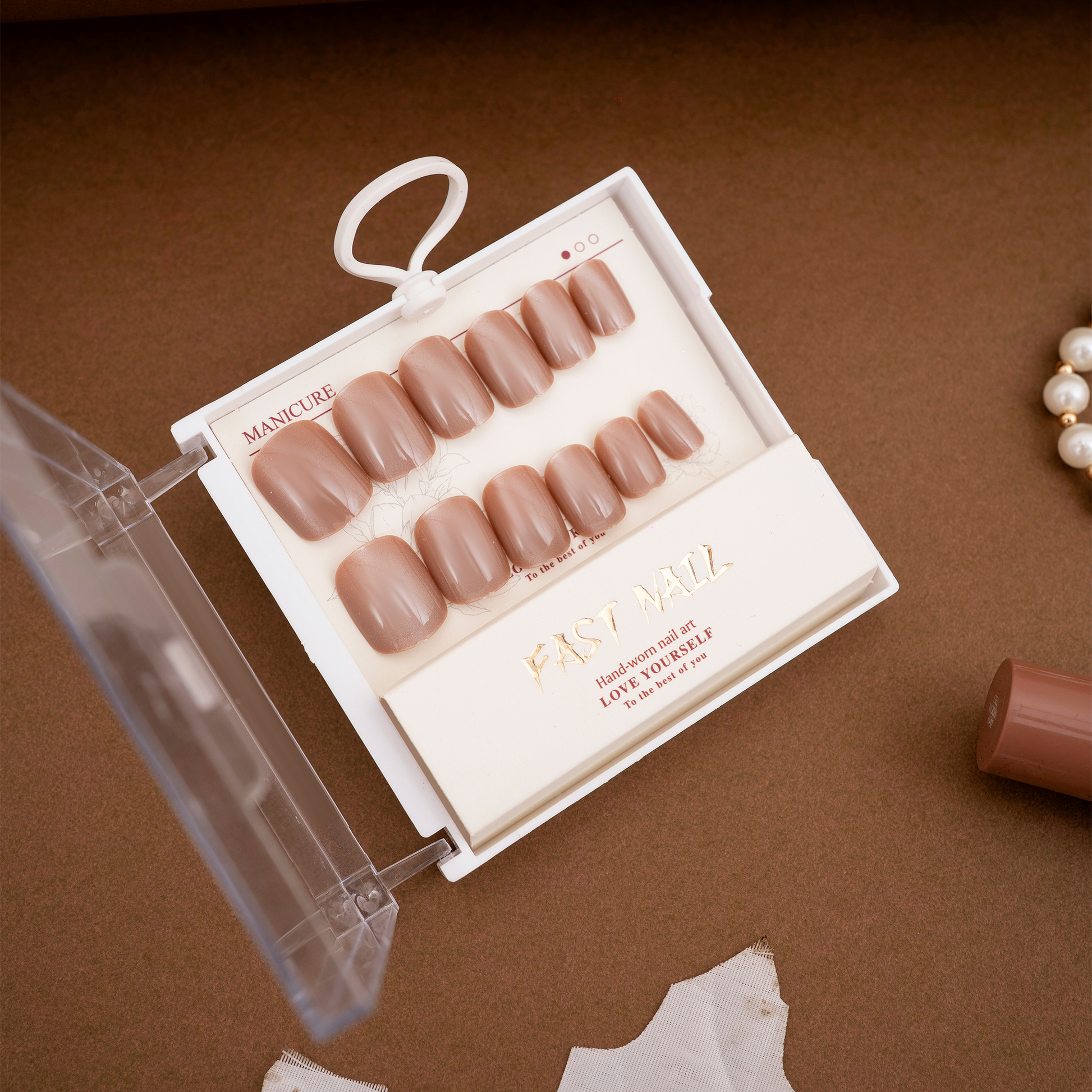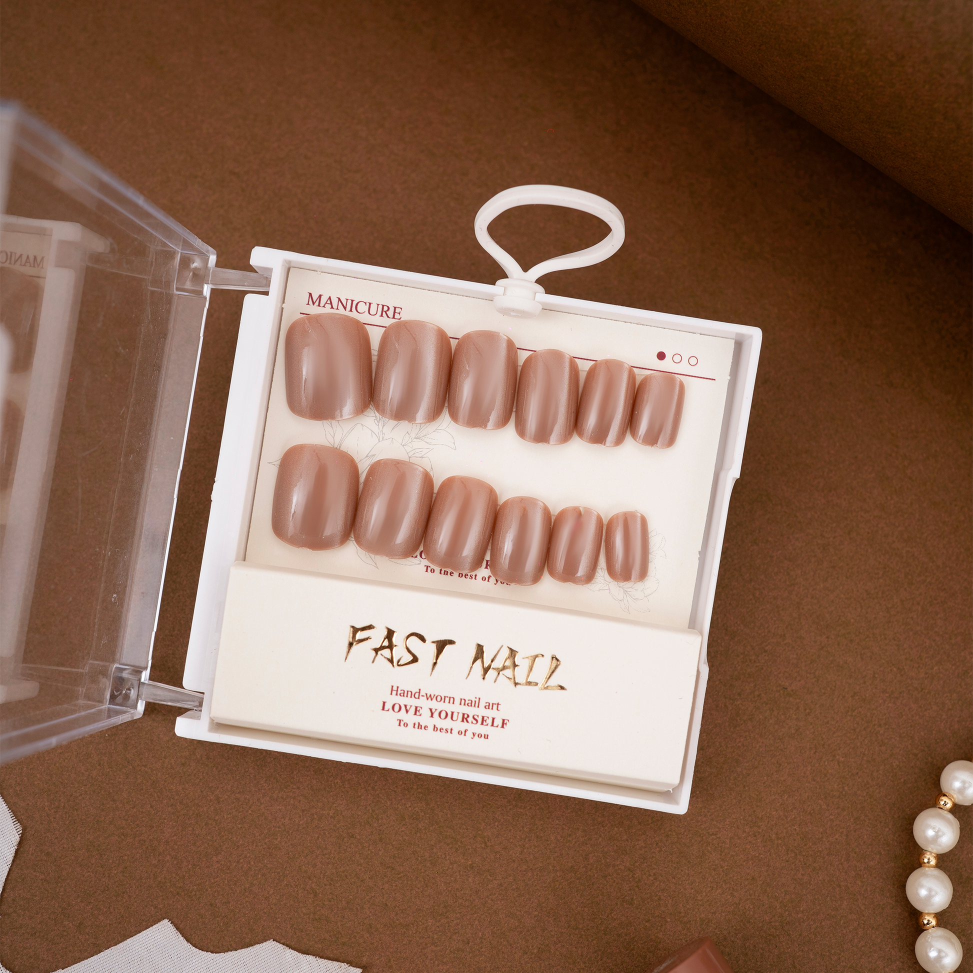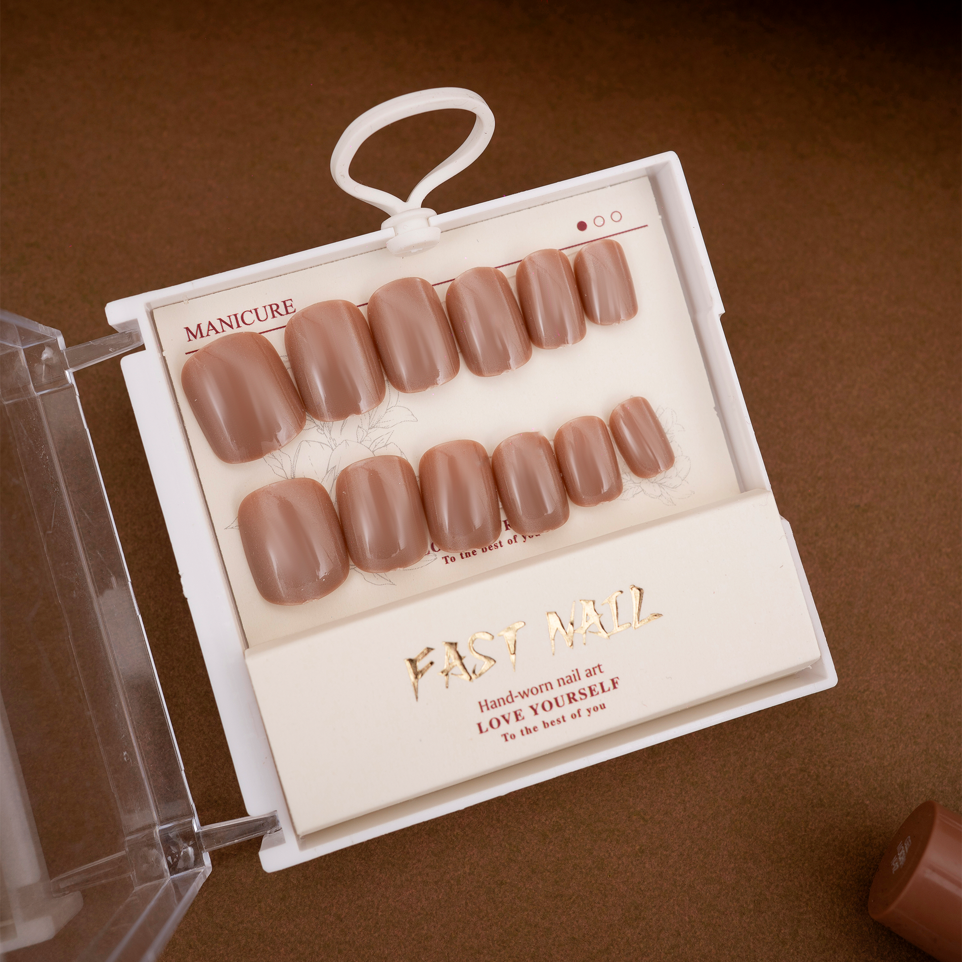 Rich mocha-brown press-on nails with a sleek, high-gloss finish for an effortlessly polished look.Perfectly shaped for everyday elegance or chic evening wear, blending warmth and sophistication.