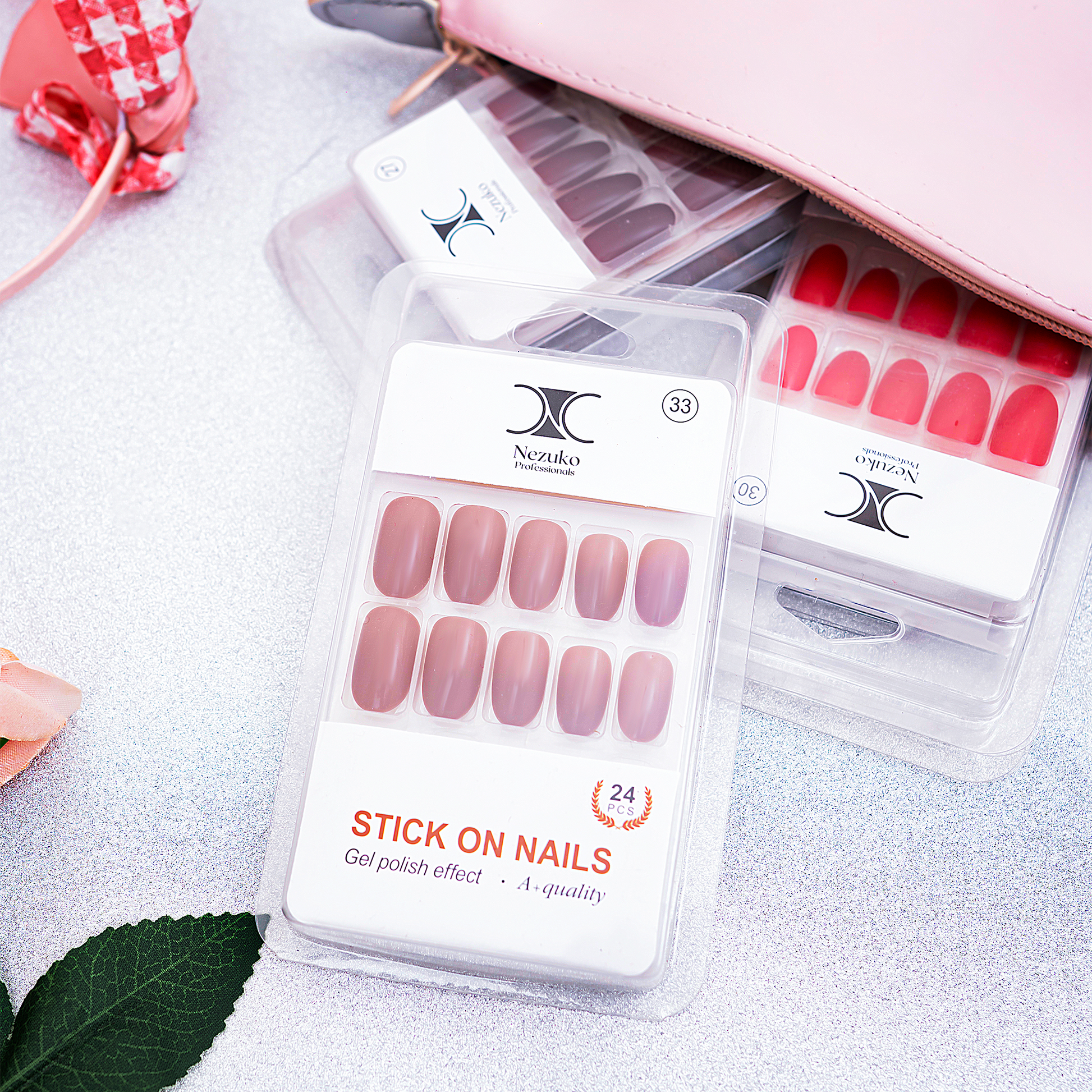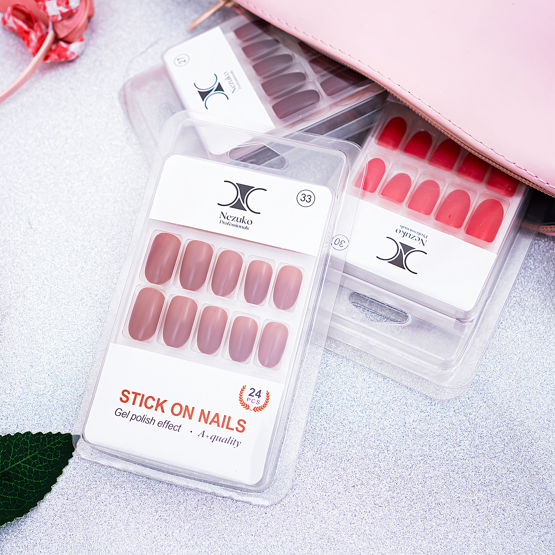 - Pick a press-on nail that fits your natural nail and apply it by pushing the base slightly under your cuticles, folding down and pressing on the nail for about 10-20 seconds.