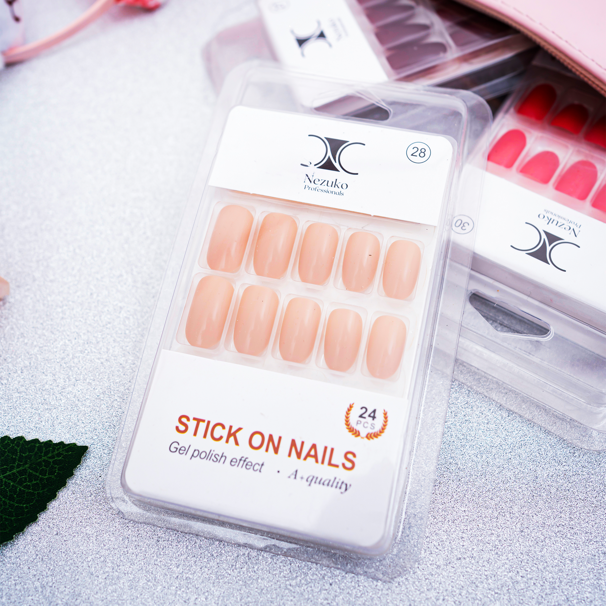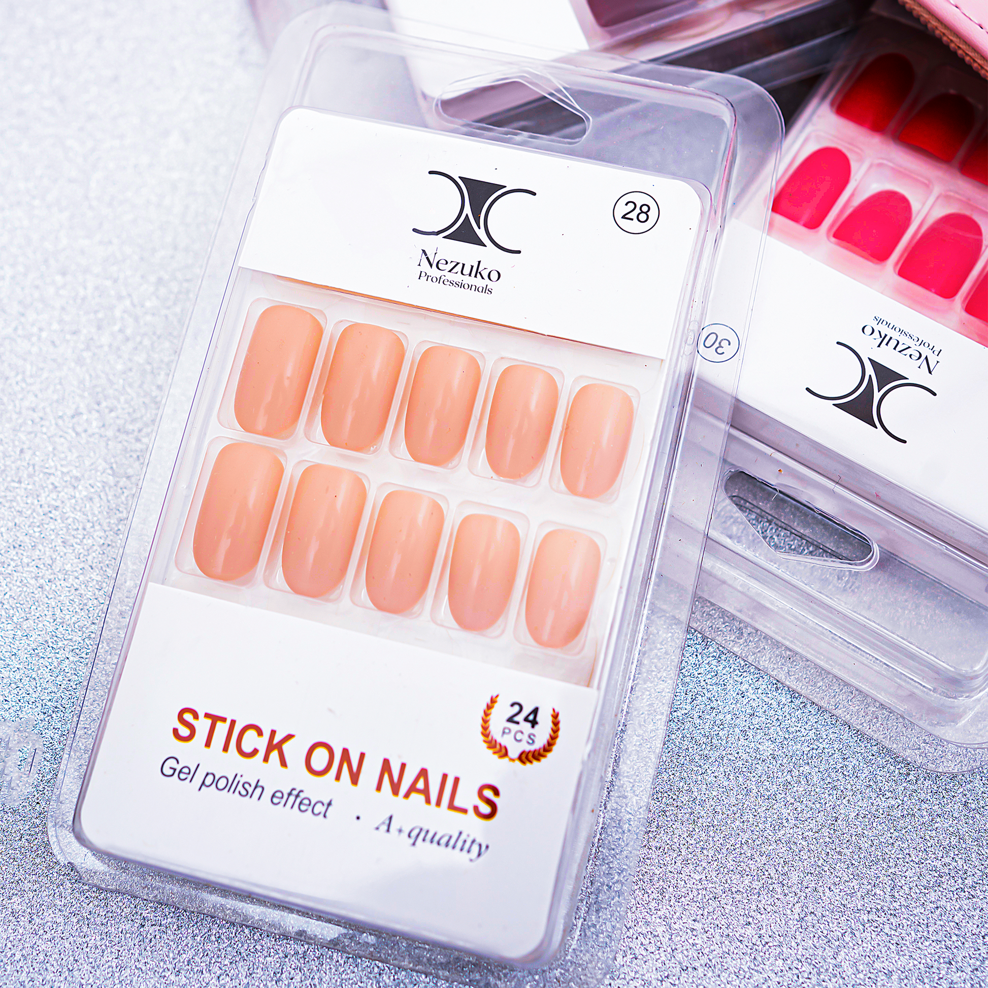 - Pick a press-on nail that fits your natural nail and apply it by pushing the base slightly under your cuticles, folding down and pressing on the nail for about 10-20 seconds.