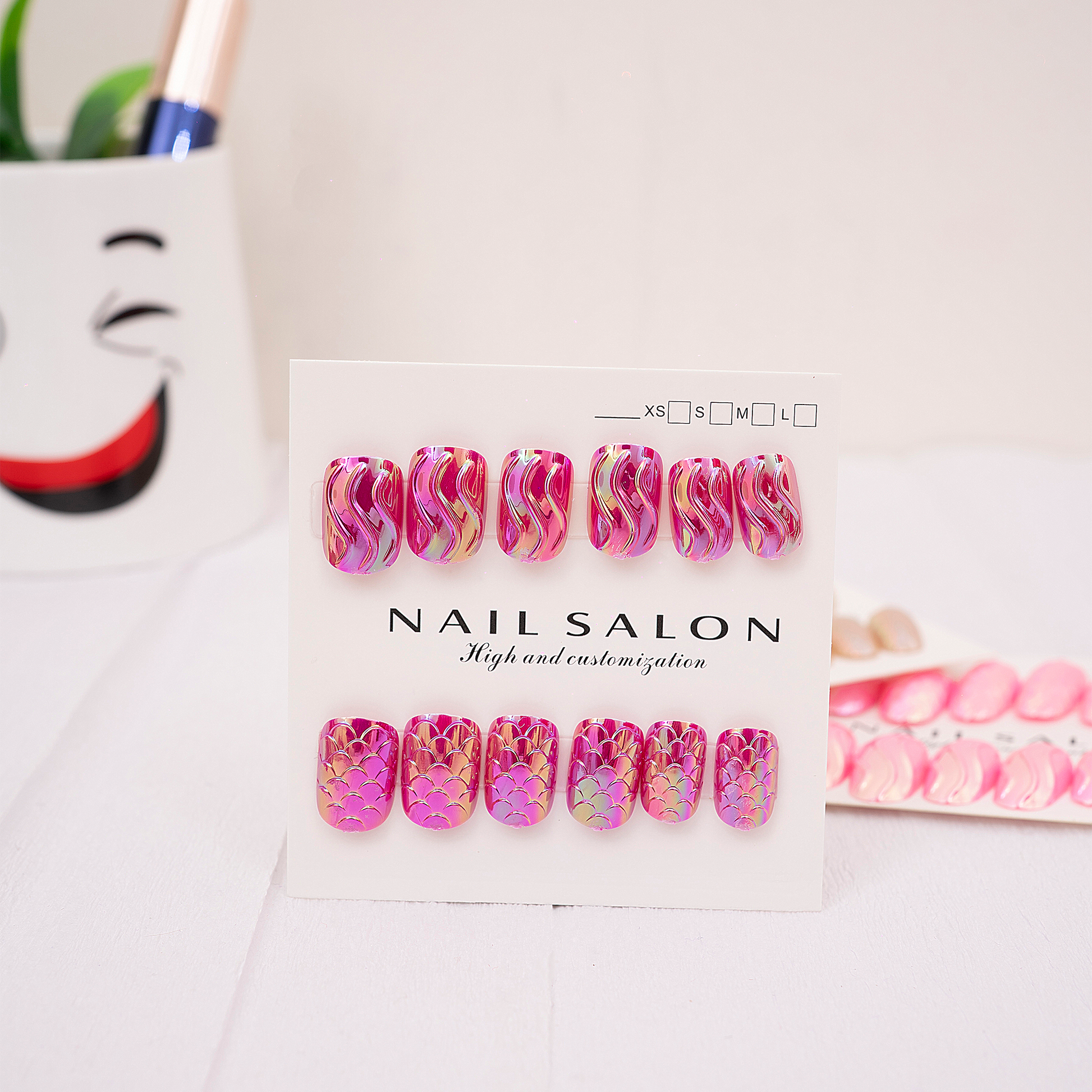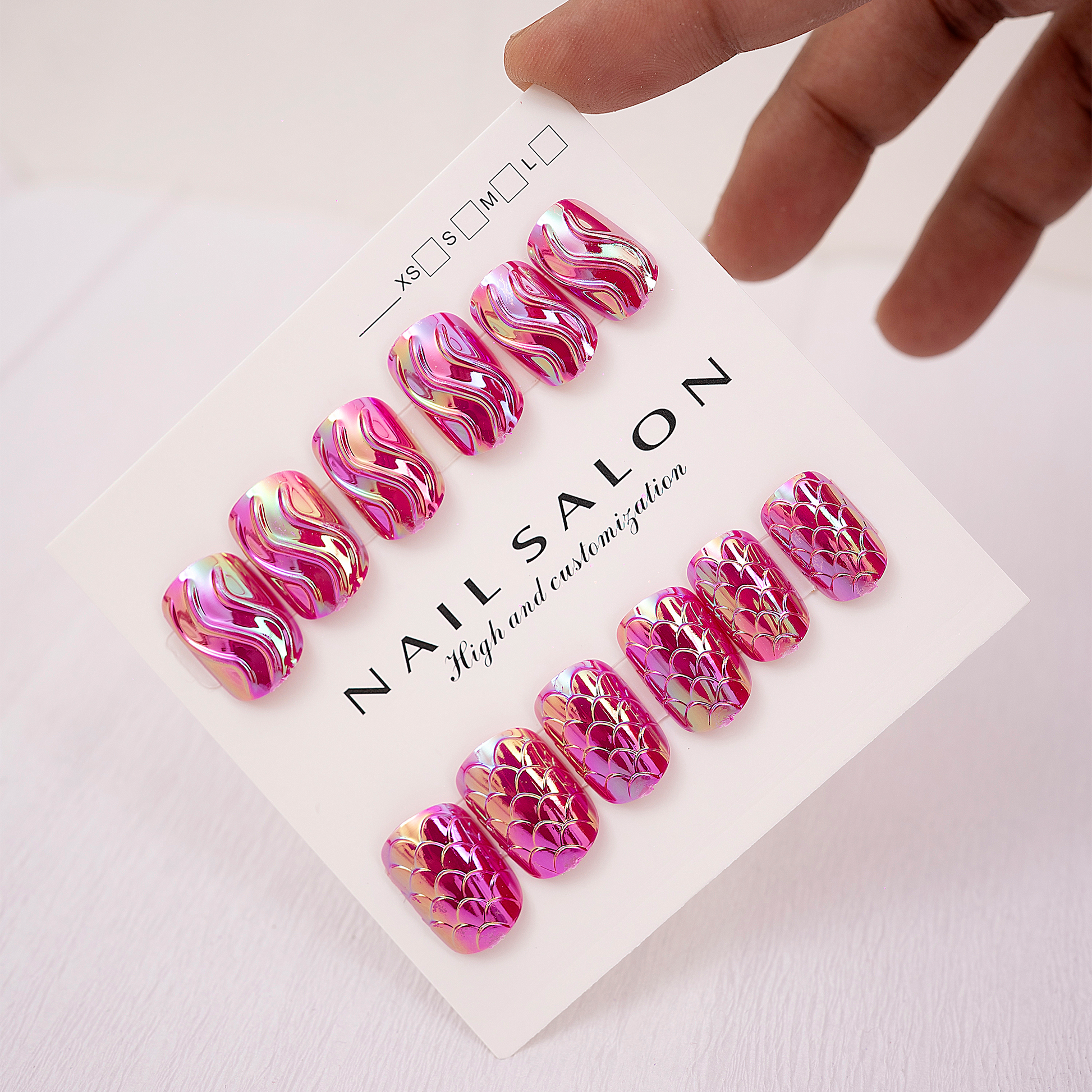 - Pick a press-on nail that fits your natural nail and apply it by pushing the base slightly under your cuticles, folding down and pressing on the nail for about 10-20 seconds.