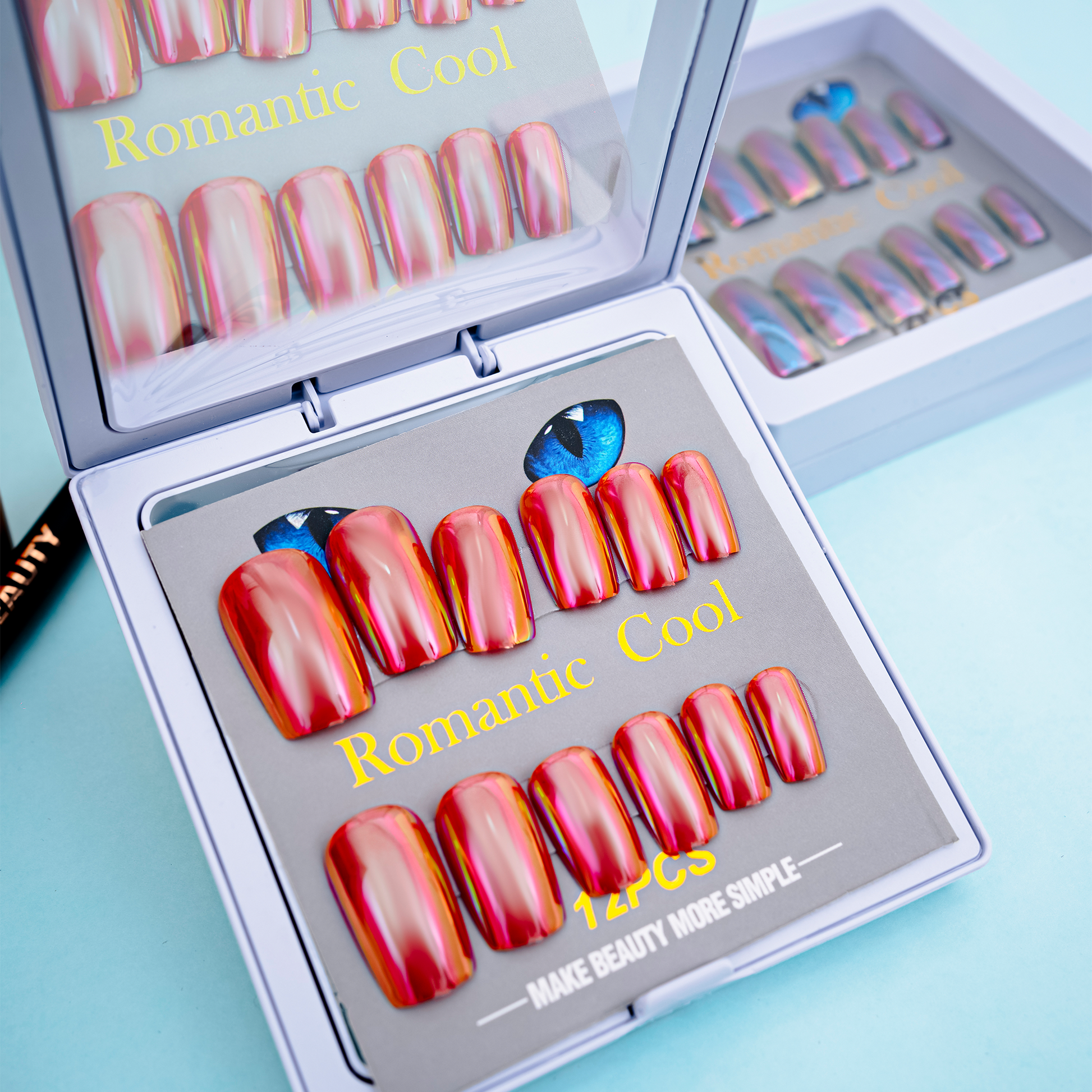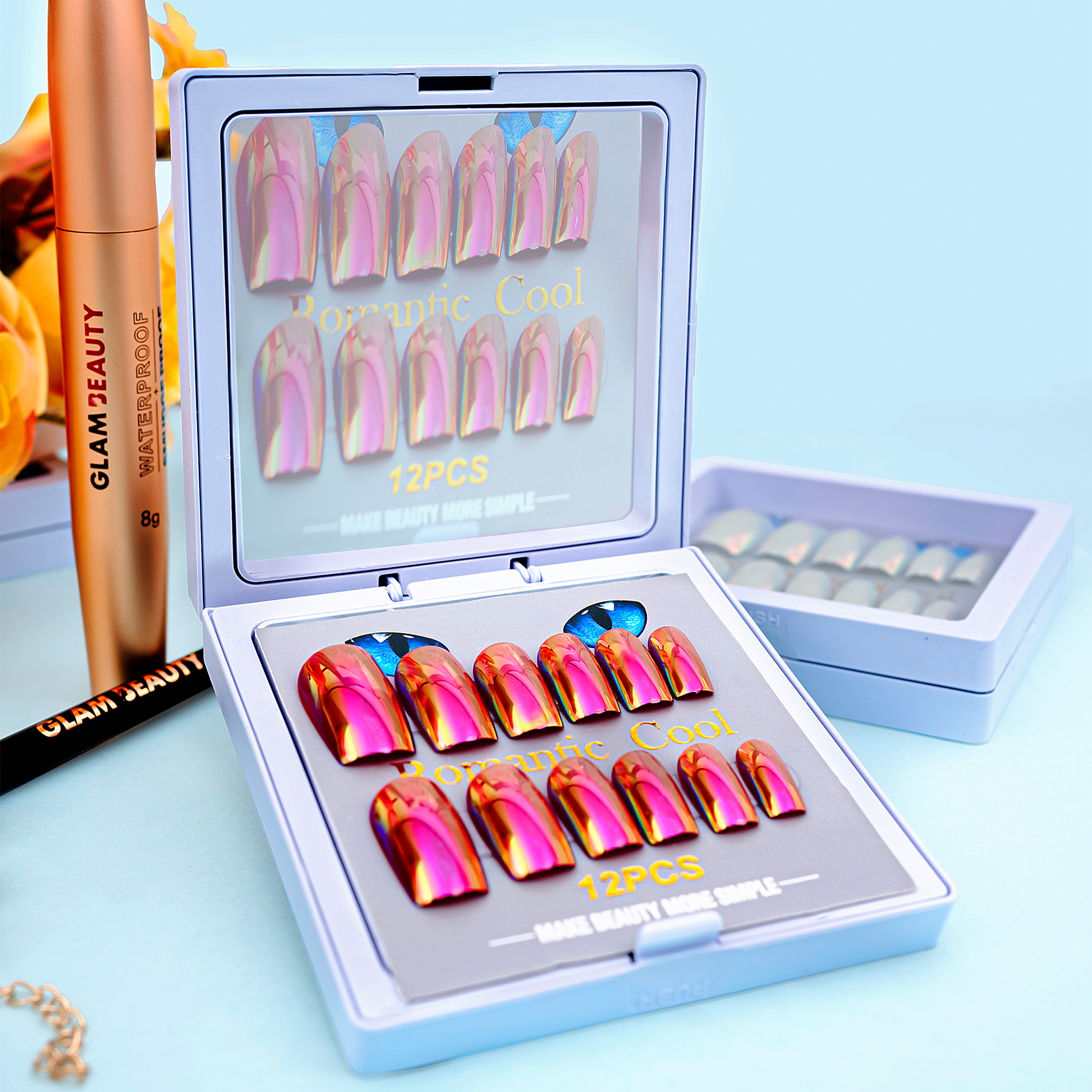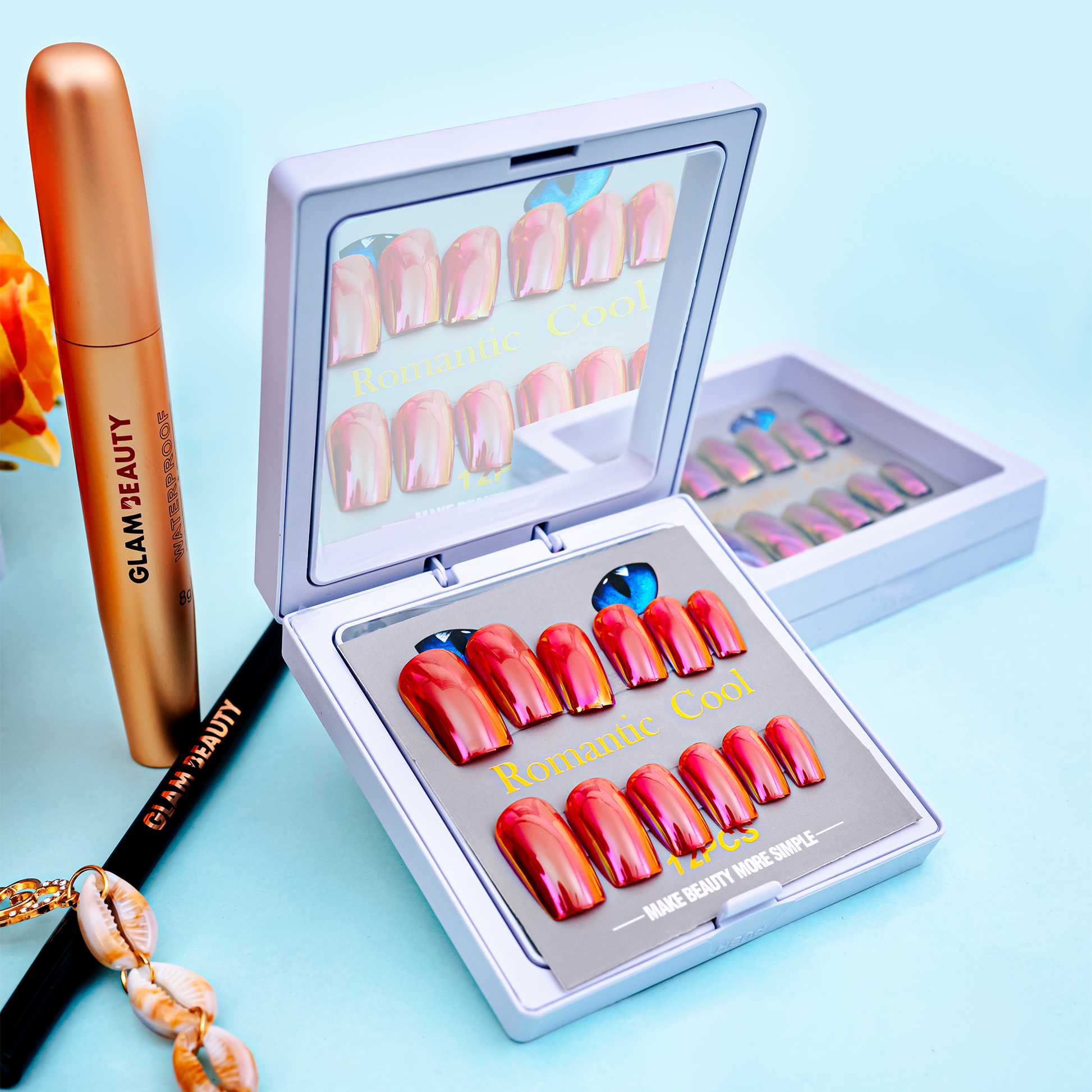 Inspired by glowing sunset tones, this chrome set blends pink and gold perfectly.The high-shine finish makes every fingertip look radiant and elegant.Great for both festive and everyday glam.