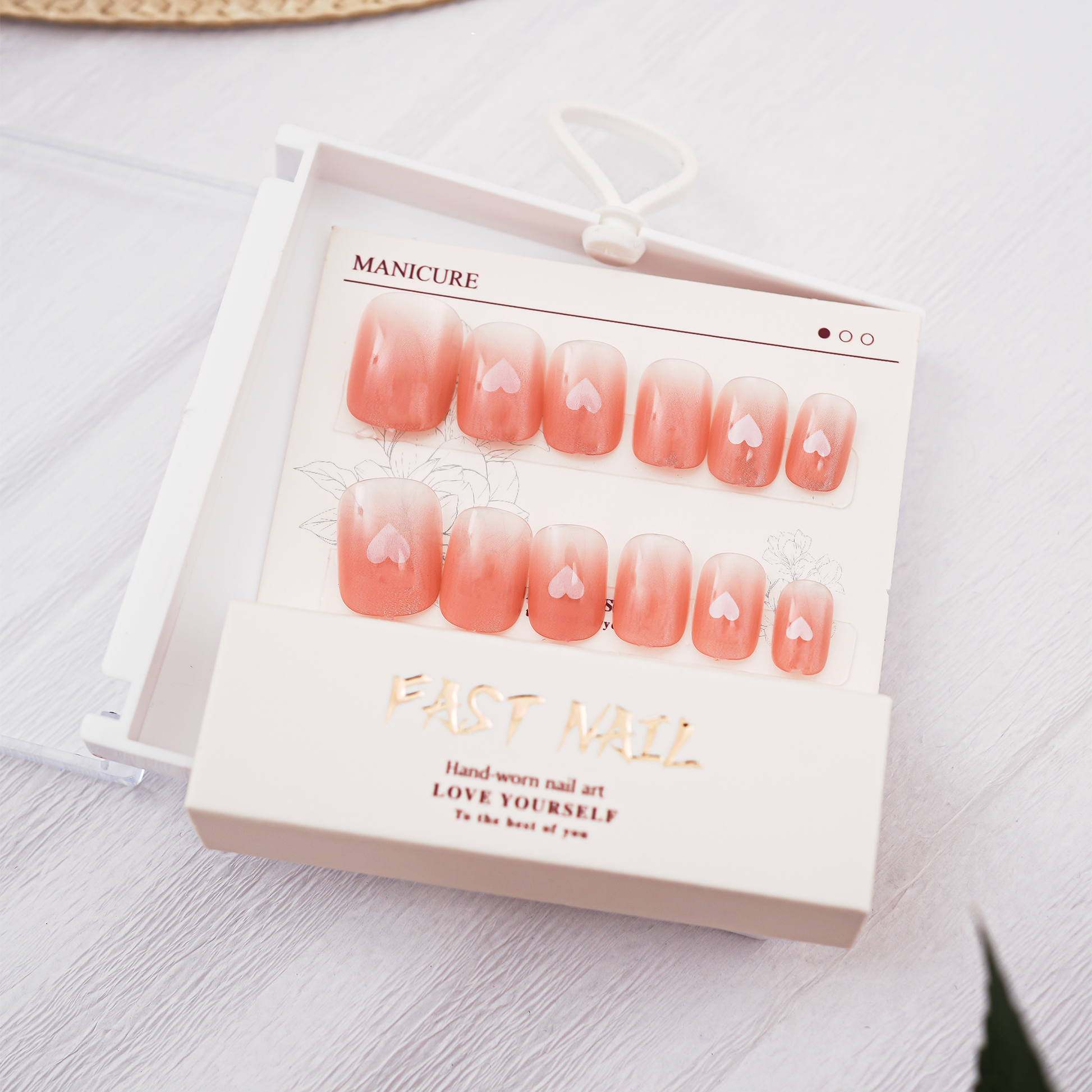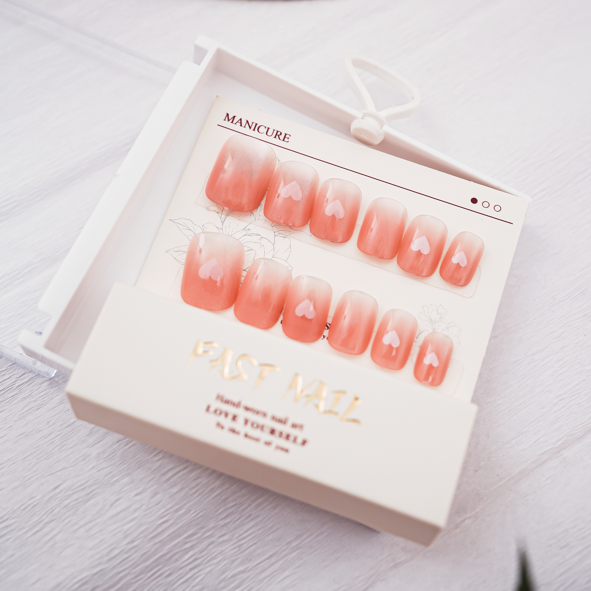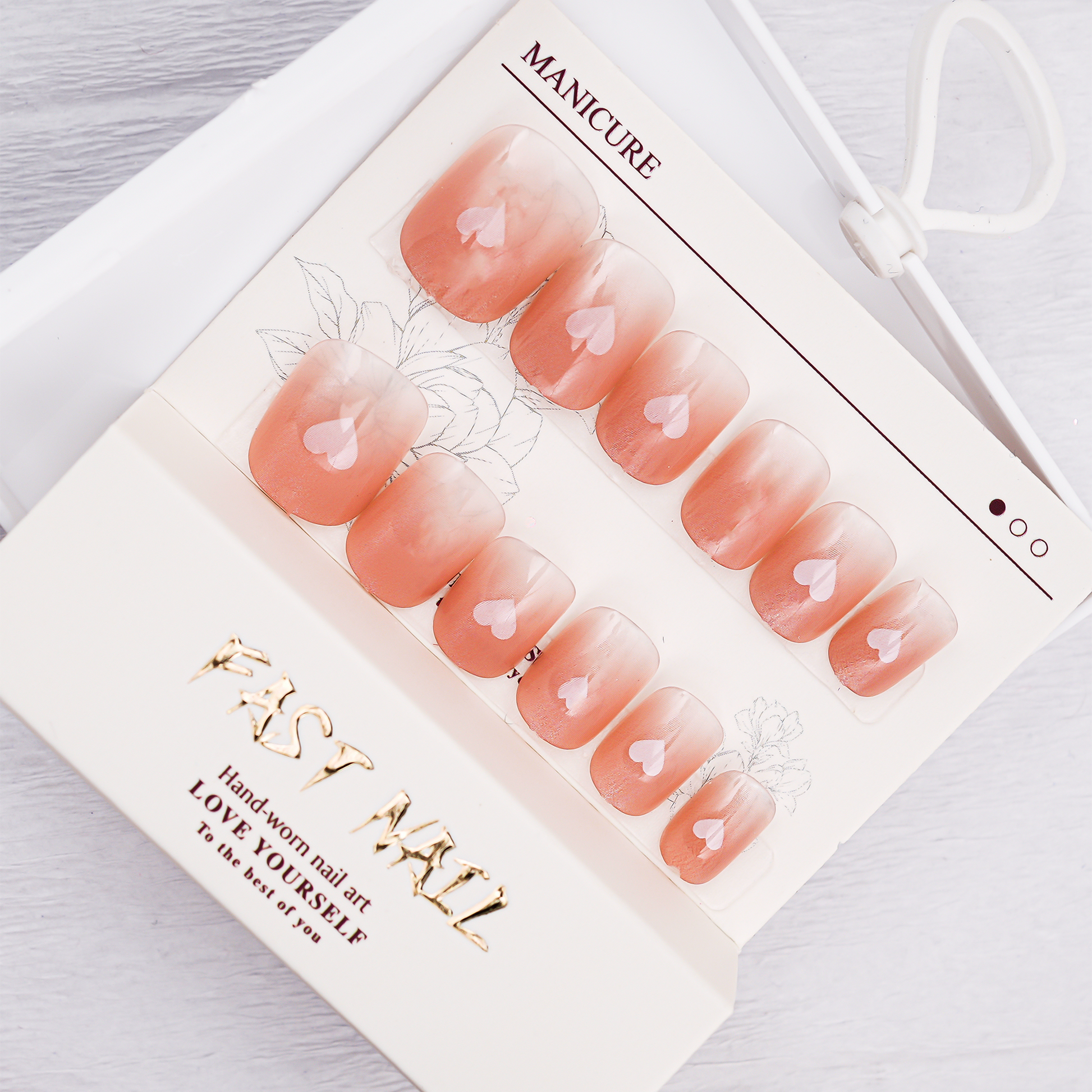 - Pick a press-on nail that fits your natural nail and apply it by pushing the base slightly under your cuticles, folding down and pressing on the nail for about 10-20 seconds.